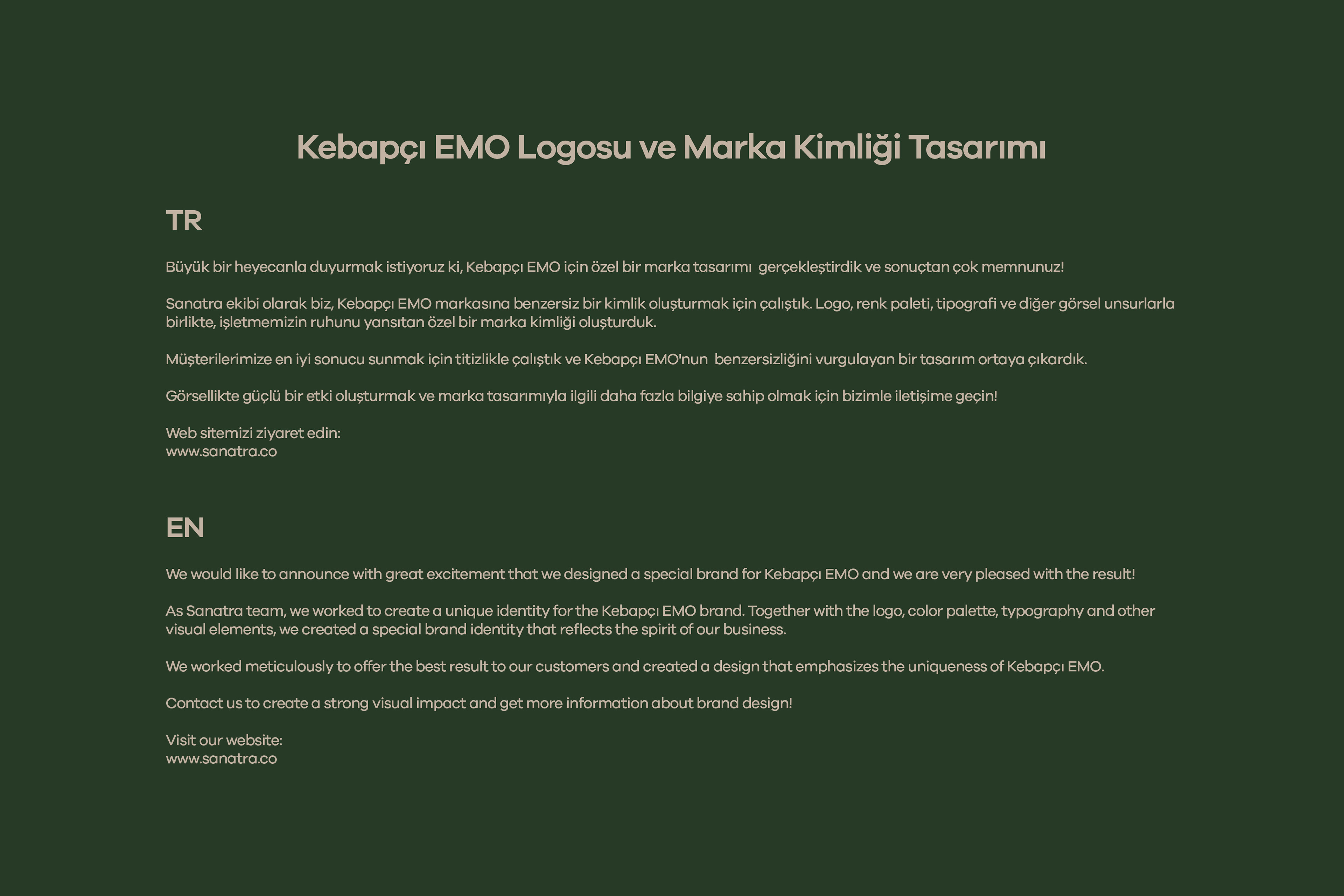 We would like to announce with great excitement that we designed a special brand for Kebapçı EMO and we are very pleased with the result!